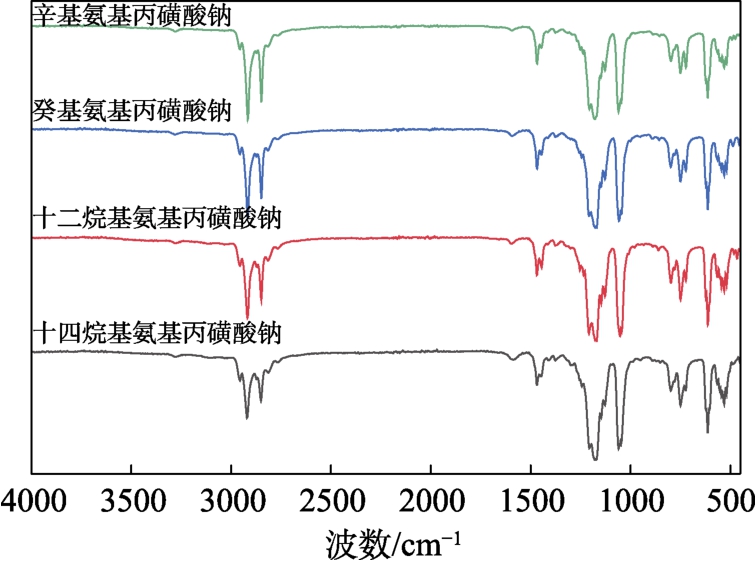 图2 不同疏水链长烷基氨基丙磺酸钠的FTIR 谱图