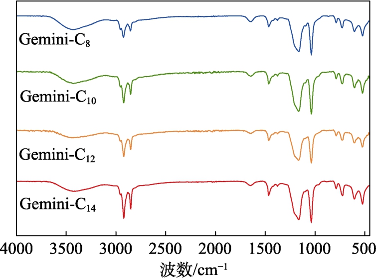 图4 不同疏水链长Gemini-Cn 的FTIR 谱图
