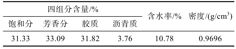 四组分含量/%饱和分 芳香分胶质 沥青质 含水率/% 密度/(g/cm3)31.3333.0931.823.76 10.78 0.9696