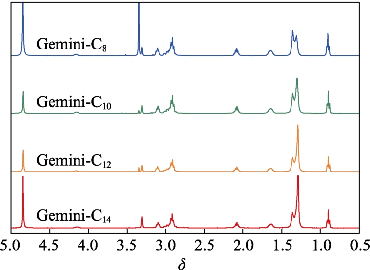 对目标产物不同疏水链长的 Gemini-Cn 进行1HNMR 表征,结果见图3。