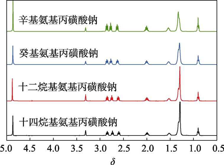 分别对疏水链长为8、10、12、14 的烷基氨基丙磺酸钠进行1HNMR 表征,结果见图1。